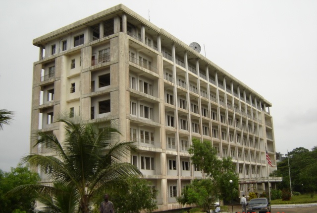 The building is located in Monrovia, capital of Liberia. The renovationworks include the office rooms on the third floor and dining room and kitchenat the bottom.